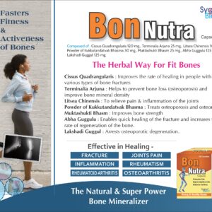 Cissus Quadrangularis (Hadjod) 120mg , Terminalia Arjuna (Arjun) 25mg , Litsea Chinesis (Medasak) 10mg , Kukkutandtwak Bhasm 30mg , Muktashukti Bhasm 25mg , Abha Guggulu 125mg , Lakshadi Guggulu 125mg