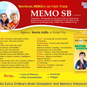 Aswagandha (Withania Somnifera) 100mg , Brahmi (Bacopa Monnieri) 100mg , Vacha (Acorus Calamus) 50mg , Jatamasi (Nordostachys Jatamansi 50mg , Jamun (Eugenia Jambolana) 50mg , Shankhpuspi (Convolvuius Pluricaulis Choisy) 75mg , Gokhru (Tribulus Terrestrs) 75mg , Draksha (Vitis Vinifera) 40mg , Bringraj (Eclipita Alba) 50mg , Mulathi (Glycyrrhiza Glabra) 75mg , Vidarikand (Ipomoea Digitata) 50mg